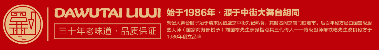 品牌創(chuàng)始人陳鐵屹先生自幼師承遼菜正宗,以發(fā)揚傳承遼味為己任。1986年,陳鐵屹先生經(jīng)師傅指導調(diào)制出第一鍋醬湯,自此開始制作熟食,并于市井銷售,食客絡繹不絕。作為中華美食的傳承者、開拓者和創(chuàng)新者,陳鐵屹先生于80年代創(chuàng)立“劉記大舞臺肘子”品牌,開出了第一家門店。基于百年秘方傳承改良,并采用新鮮放心原料,秘用二十幾味名貴藥材,延用傳統(tǒng)工藝專心加工而成,形成了色澤艷麗,酥爛脫骨,肥而不膩,瘦而不柴的風味產(chǎn)品。